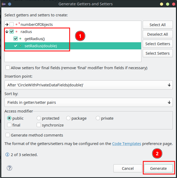 选择你需要生成getter和setter的私有变量然后点击Generate按钮就会自动生成getter及或是setter函数。