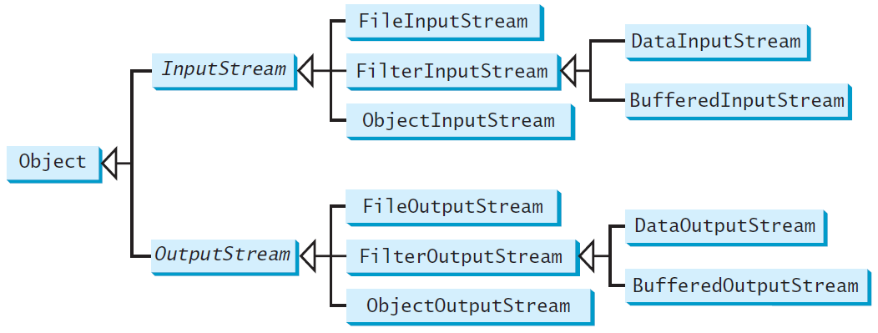 这样以来 DataInputStream 和 DataOutputStream 和具体如何读写文件就无关了,因为是FileInputStream 和 FileOutputStream 完成具体的文件读写工作。