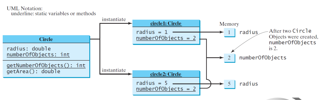 在本章节以前,我们也看到过类,也有相应的变量和函数,但是大多是静态的。本章开始,如同Circle类一样,定义的变量、函数都没有static的修饰,叫做实体变量和实体函数(区别于动态)。实体类型的变量和函数只能在引用对象的变量上面进行调用,而不能在类上进行调用。