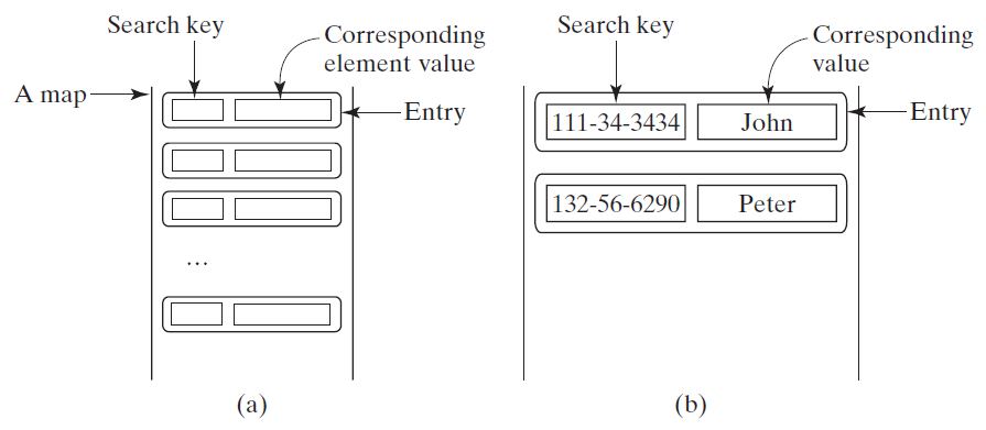 An instance of Map represents a group of objects, each of which is associated with a key. You can get the object from a map using a key, and you have to use a key to put the object into the map.