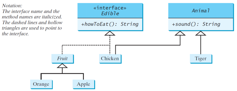 All classes share a single root, the Object class, but there is no single root for interfaces. Like a class, an interface also defines a type. A variable of an interface type can reference any instance of the class that implements the interface. If a class extends an interface, this interface plays the same role as a superclass. You can use an interface as a data type and cast a variable of an interface type to its subclass, and vice versa.