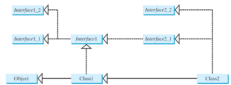 All classes share a single root, the Object class, but there is no single root for interfaces. Like a class, an interface also defines a type. A variable of an interface type can reference any instance of the class that implements the interface. If a class extends an interface, this interface plays the same role as a superclass. You can use an interface as a data type and cast a variable of an interface type to its subclass, and vice versa.